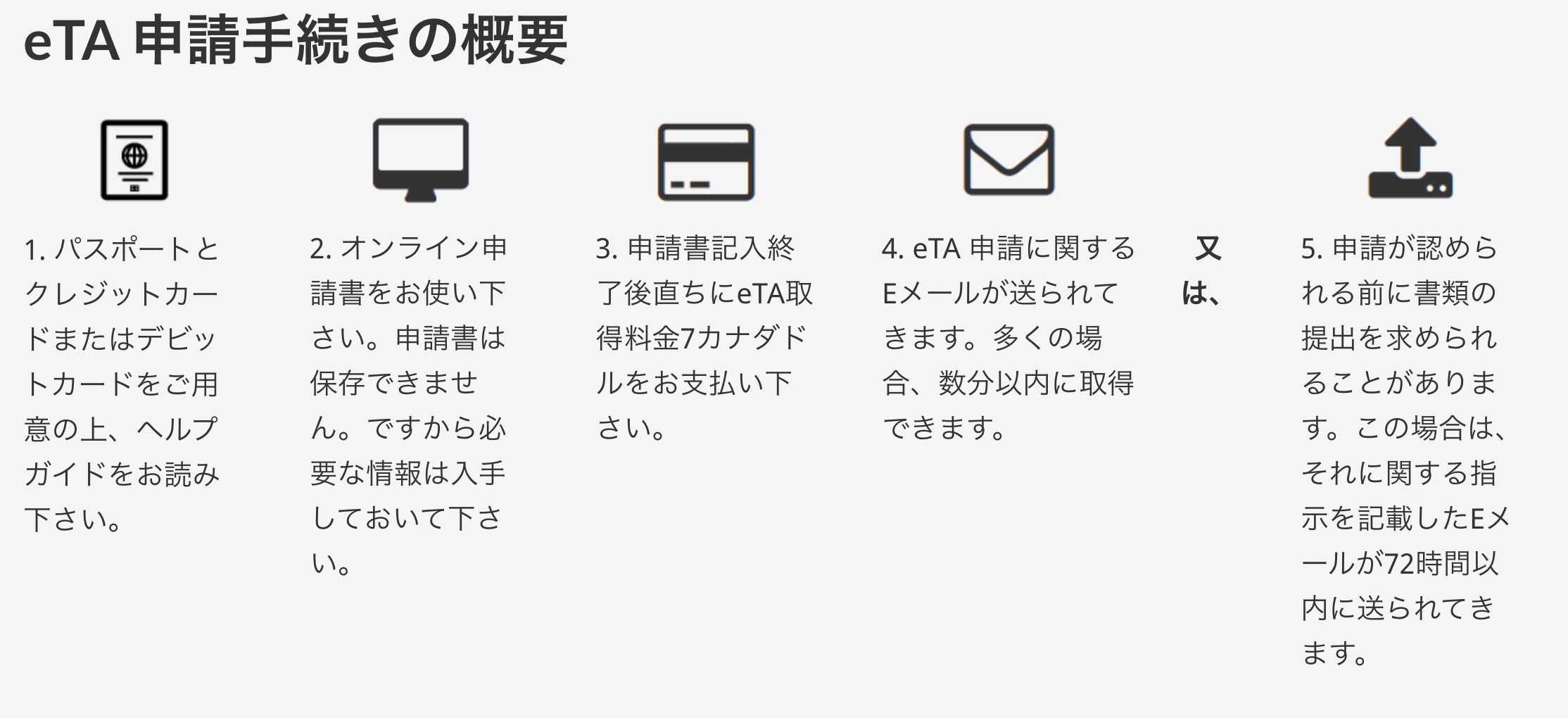 なお、後述するカナダの「eTA」とは名称が似ていますが、まったく別の制度です。
