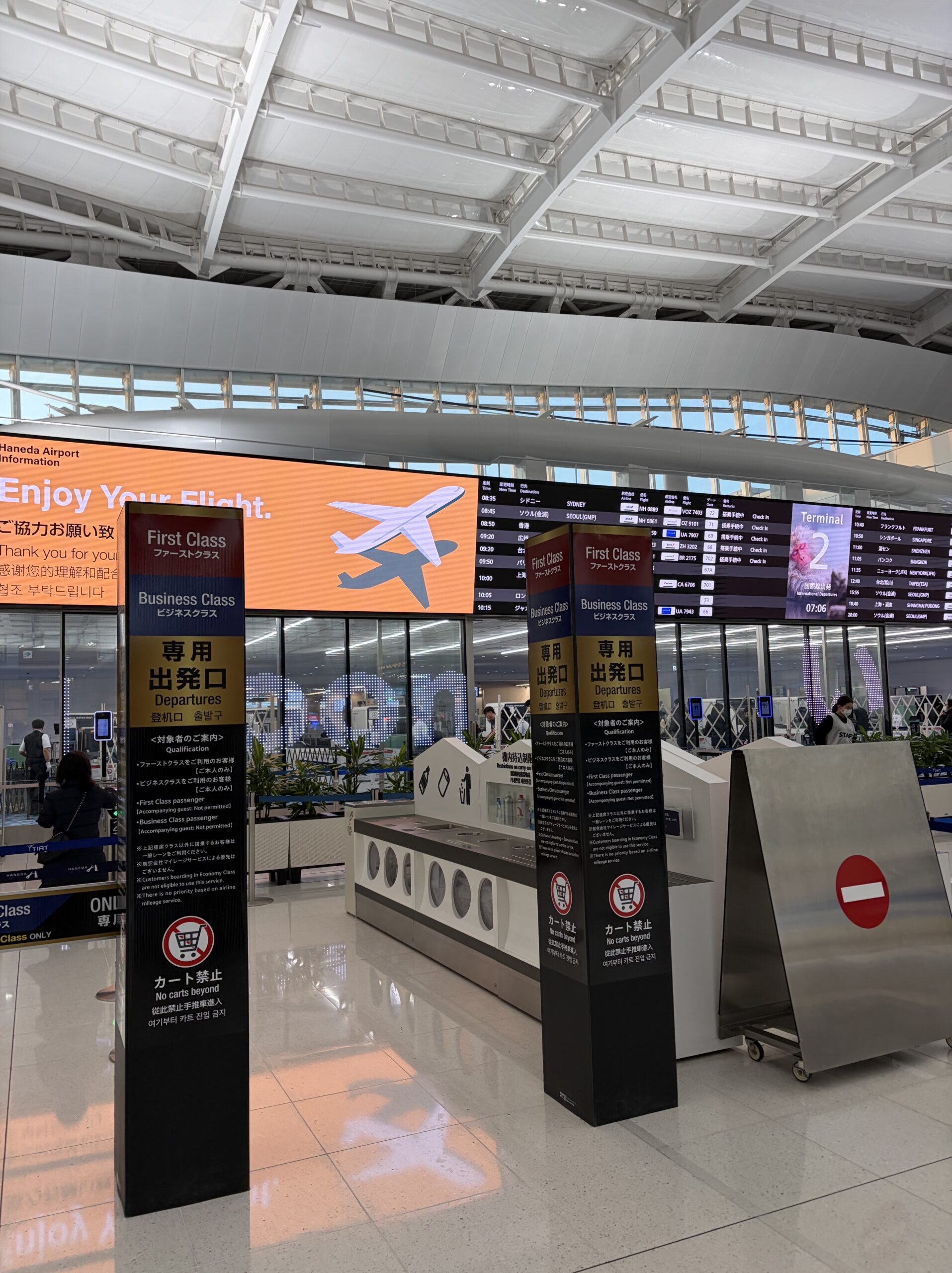 ビジネスクラス/ファースト用の専用レーンも利用しましたが、そもそも混雑が少なく、スムーズでした。