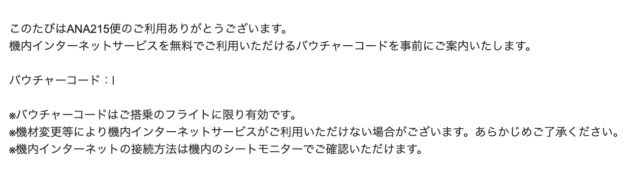 Wi-Fiは無料。以前は紙のクーポンだったけど、今回は事前にメールでコードが届く方式でした。