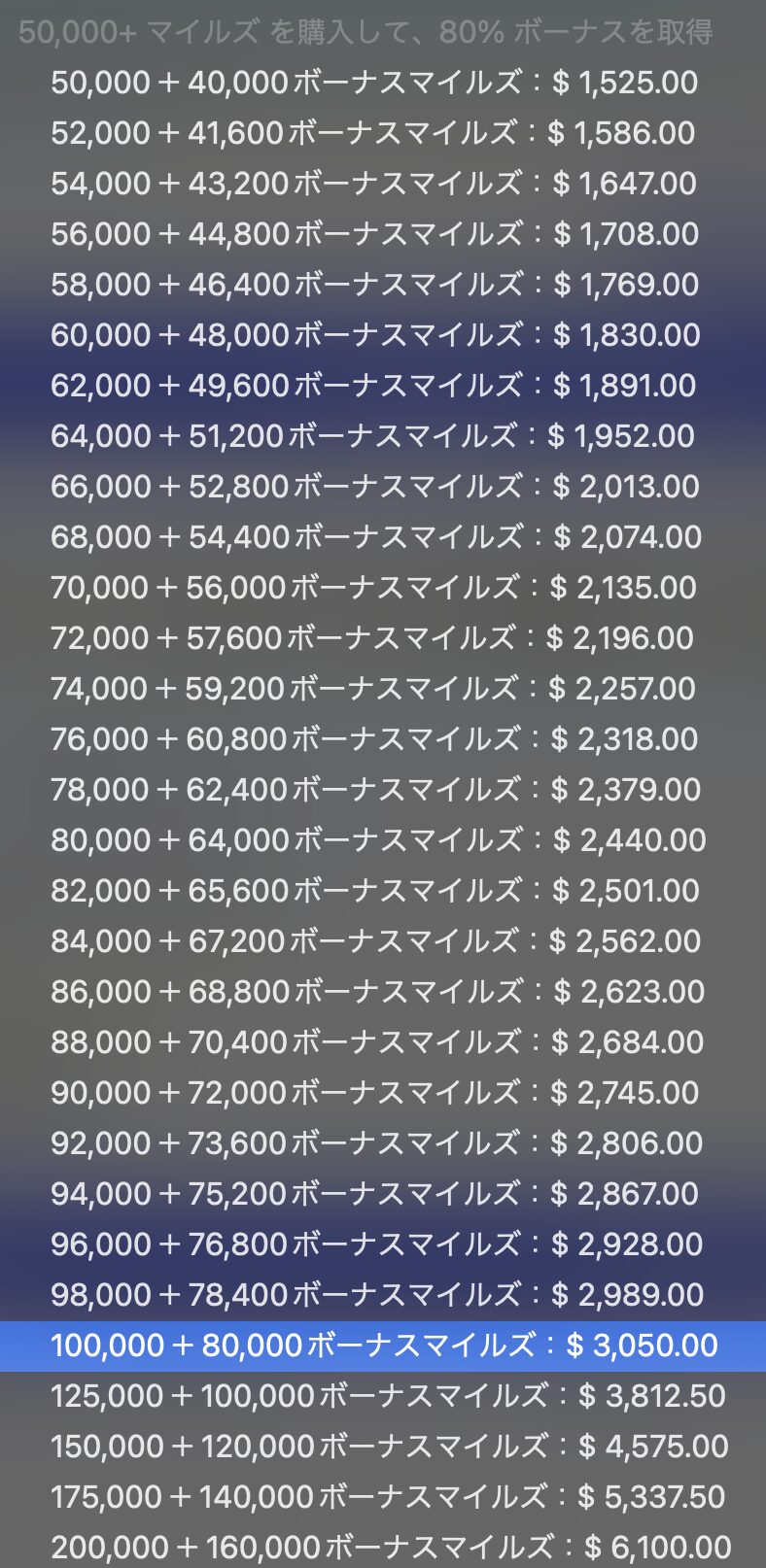 - ボーナスマイル:38,400マイル(80%ボーナス)
