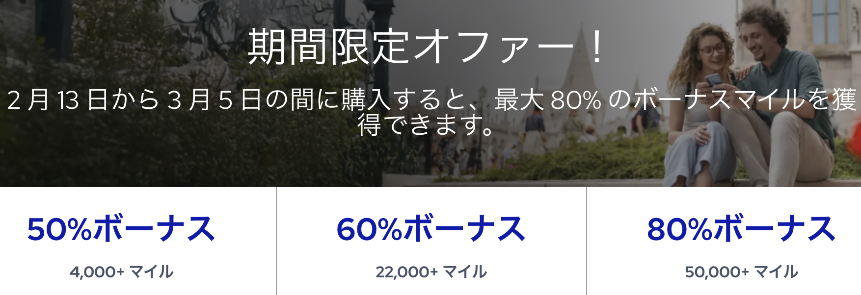 - ボーナスマイル:38,400マイル(80%ボーナス)