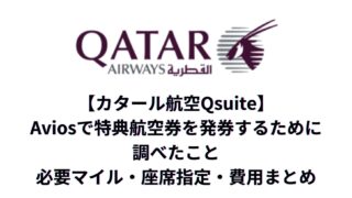 カタール航空ろぐ 【カタール航空Qsuite】Aviosで特典航空券を発券するために調べたこと|必要マイル・座席指定・費用まとめ Aviosでカタール航空Qsuiteを発券する際の必要マイル、座席指定料金、キャンセル手数料、諸税、荷物条件、有償とのコスパ比較まで実体験ベースで整理。これからQスイートを狙う方の事前チェックリストに。 2025.12.09 カタール航空ろぐ
