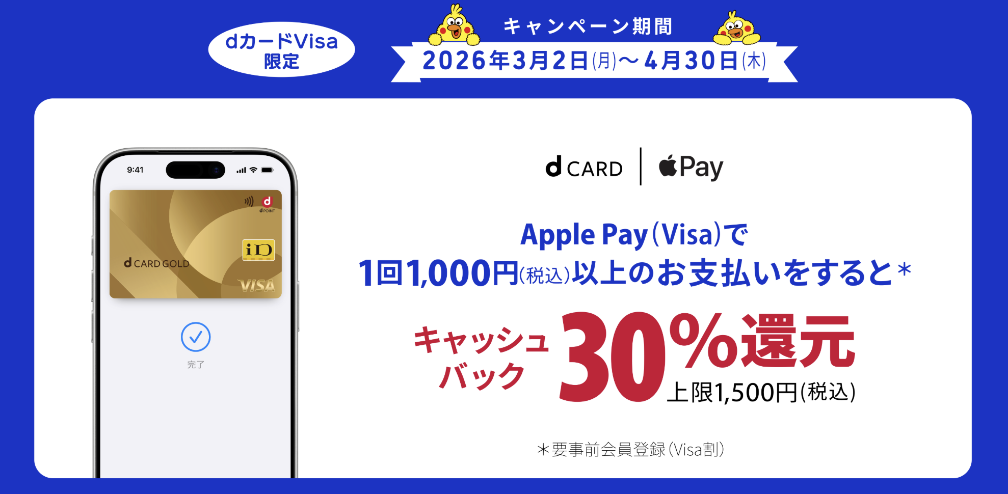 dカードVISA × Apple Payで30%キャッシュバック