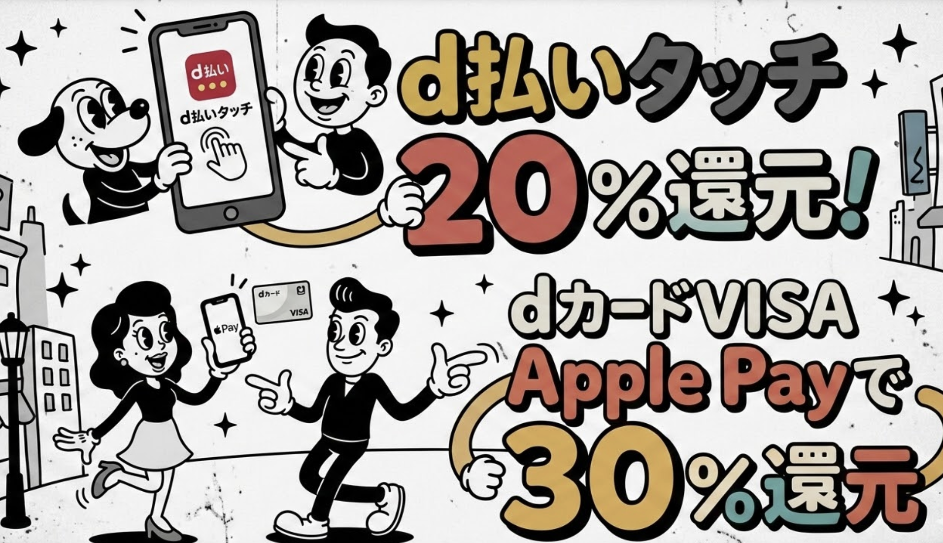 - dカードVISA × Apple Pay:タッチ決済で30%キャッシュバック(上限1,500円)