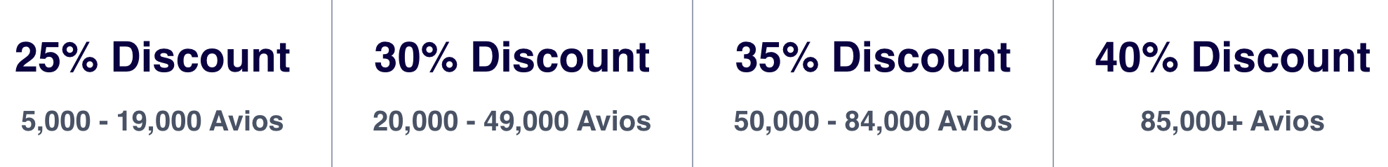 | 85,000 Avios以上 | 40%割引 |