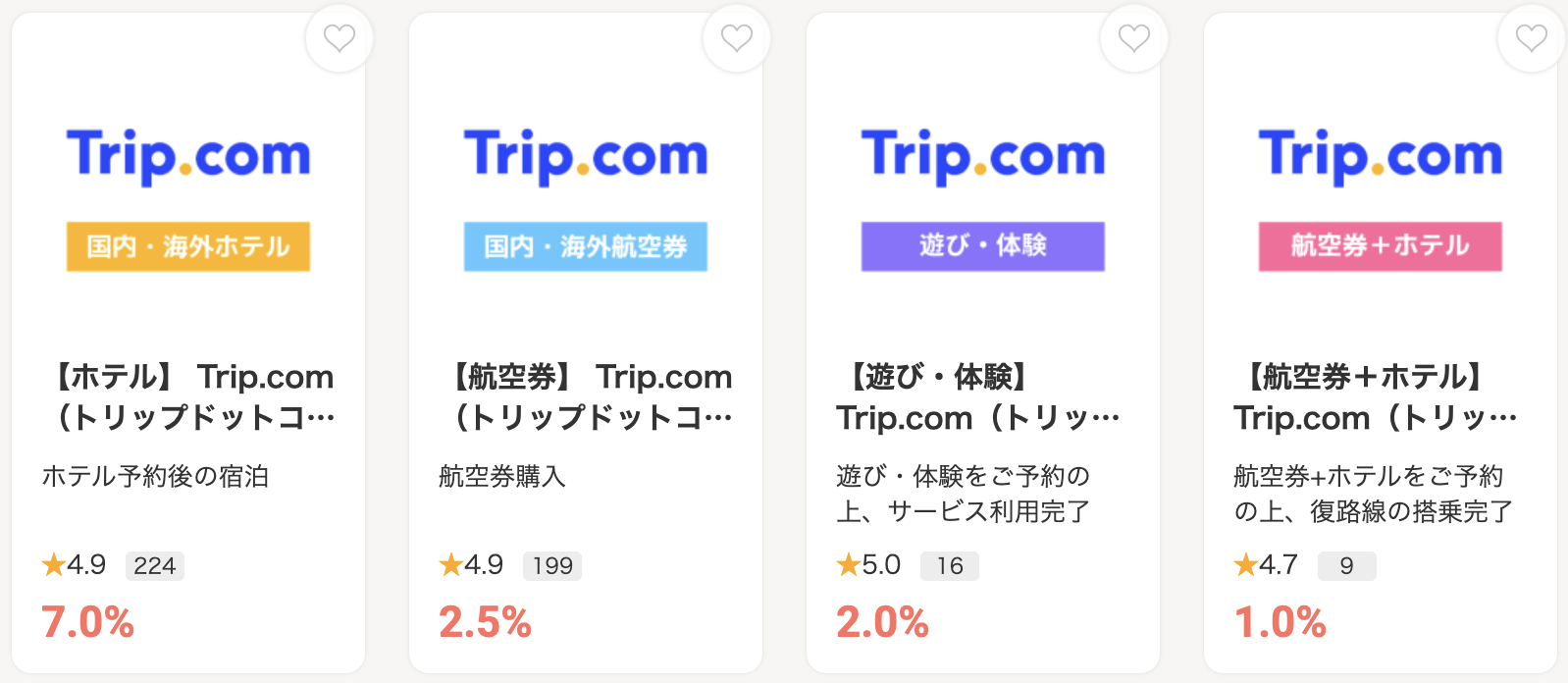 また今回予約で利用したTrip.comですがポイ活やマイラー特にJALを貯めてる方にはお馴染みの