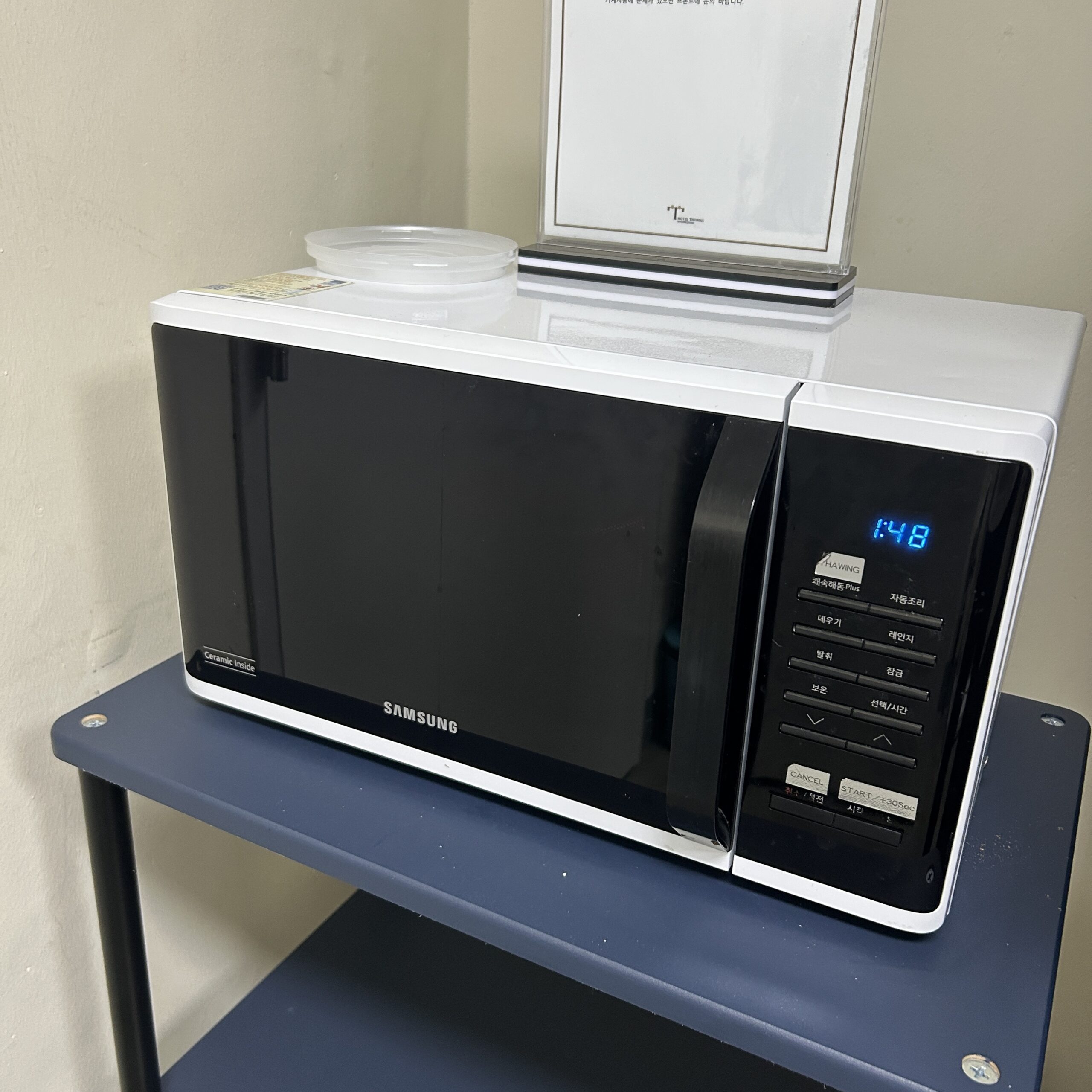 韓国語なので使い方は正直わからないけど、お湯も出せたし、電子レンジも使えました