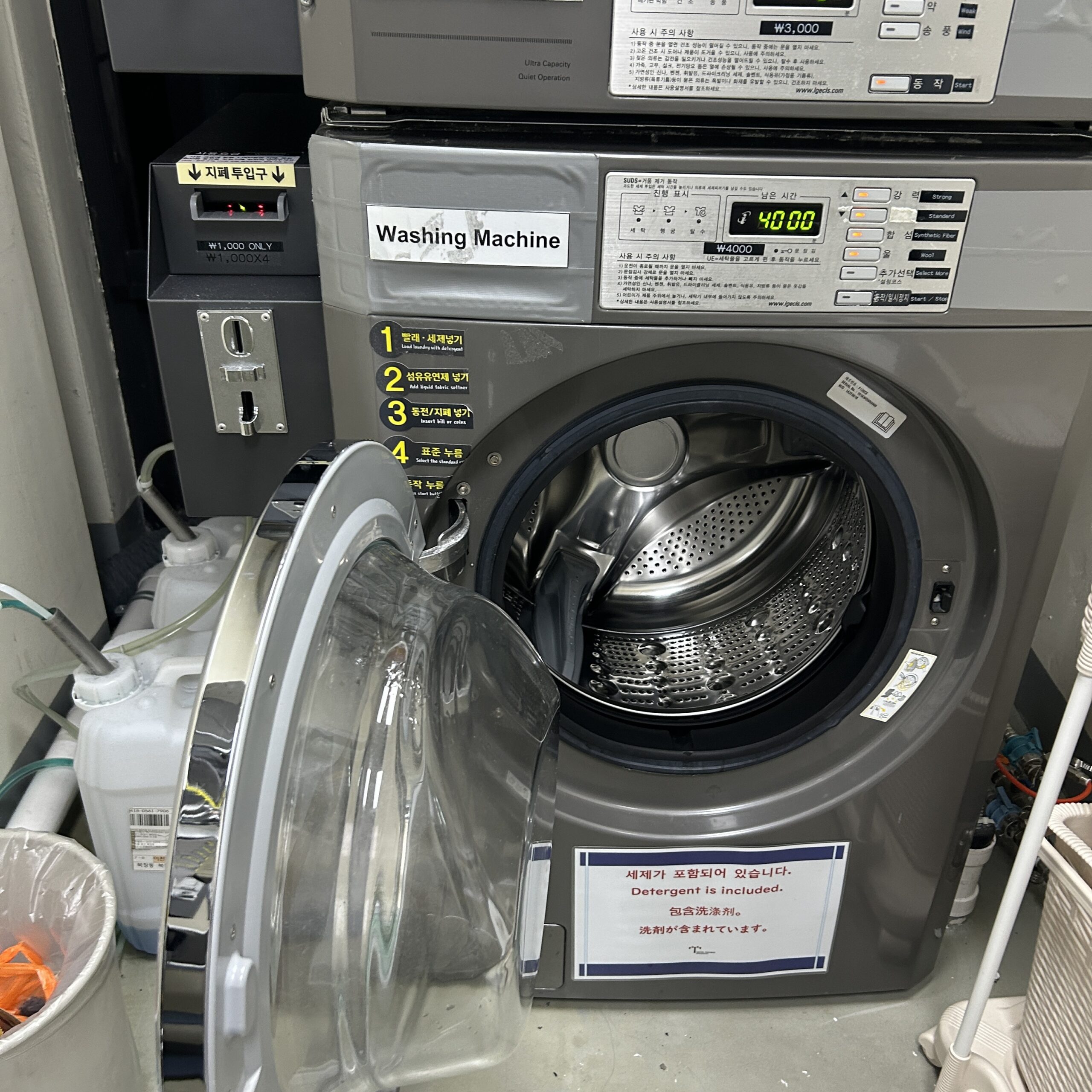 洗濯機、乾燥機はおそらく1000ウォンのお札のみ。