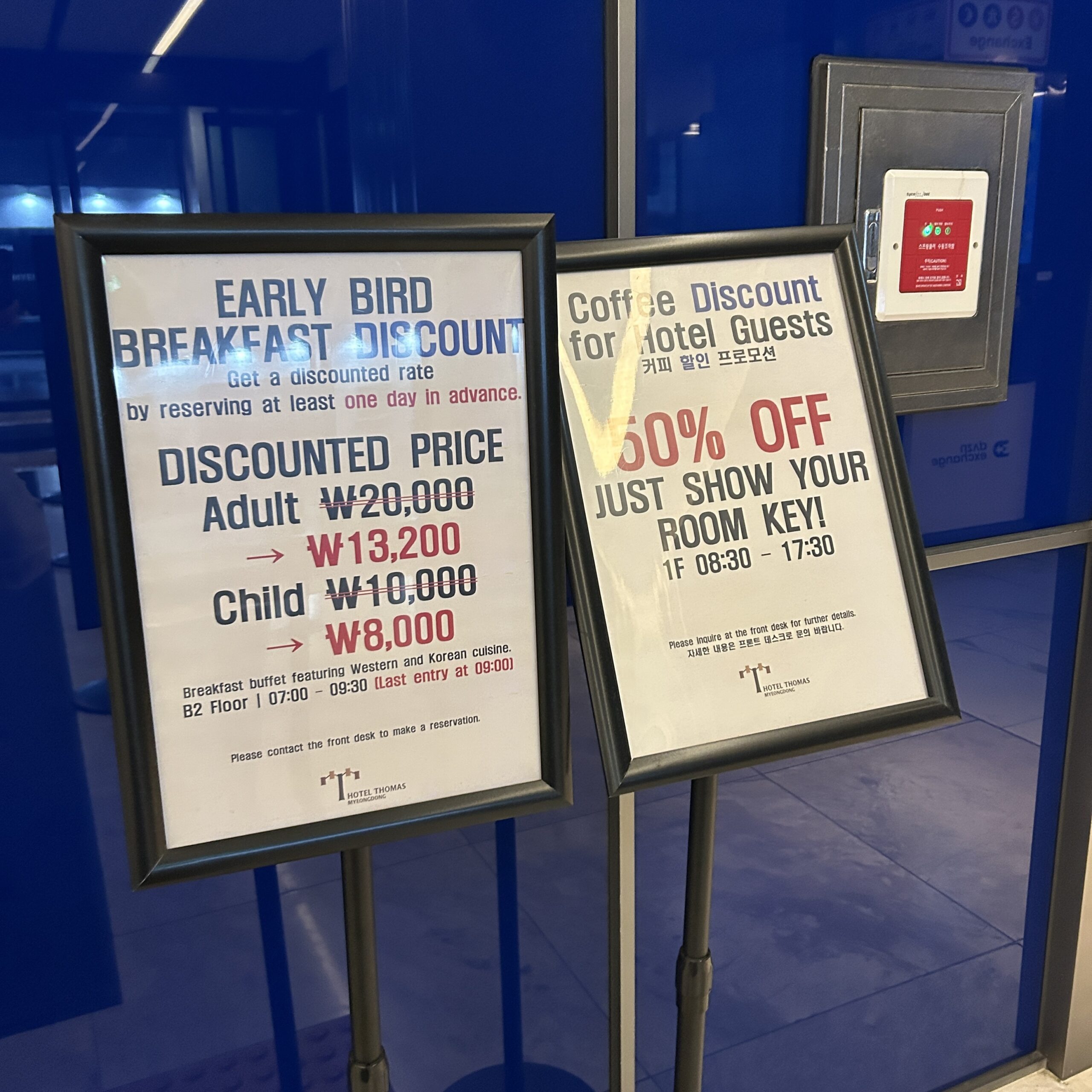 フロントに両替をお願いすればしてくれると思うけどね - 朝食やコーヒーの割引の案内がありましたが使っておらず