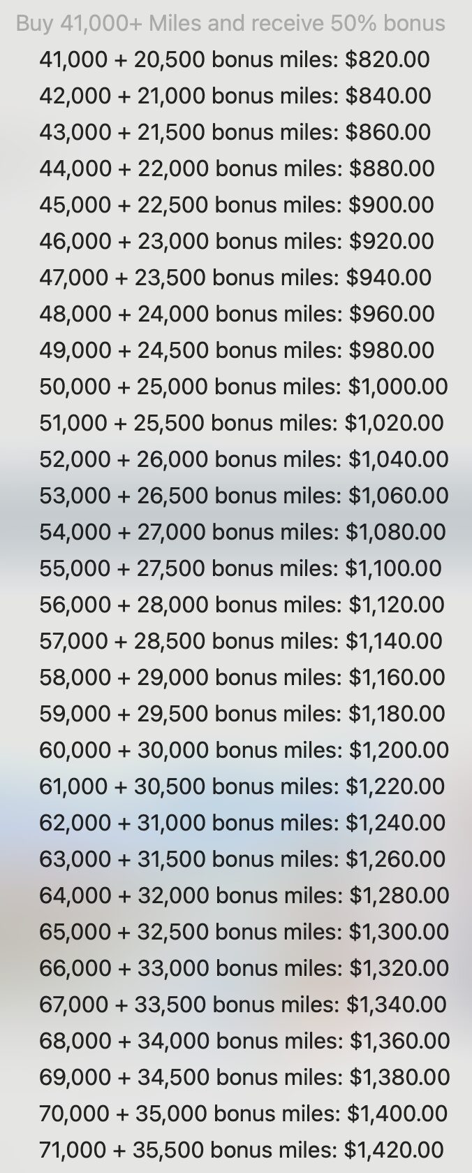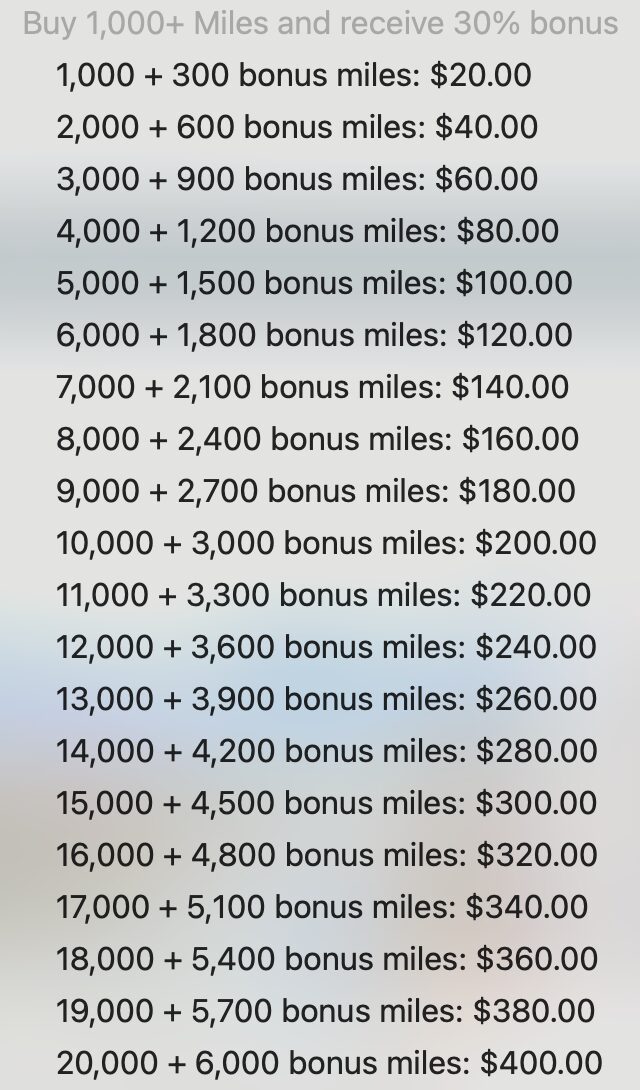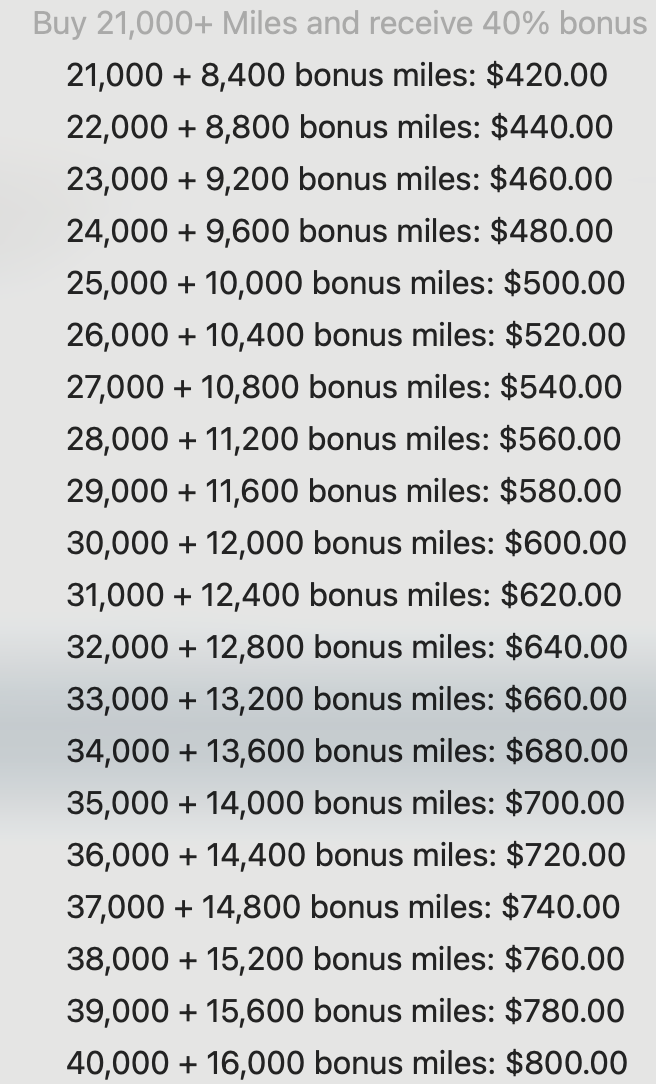 • 最大購入例:200,000マイル購入 → 300,000マイル受取 → $4,000(≒62万円)
