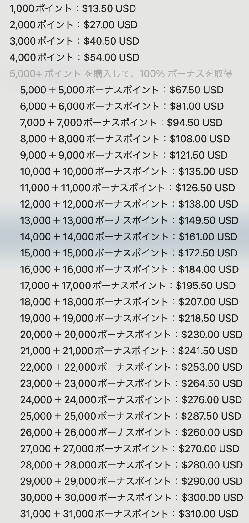 - 払い戻し不可:一度購入したポイントは、いかなる理由でも返金不可。