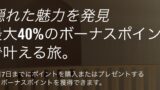 通常80~100%ボーナスが多い中、今回の100%は最も還元率の高いセールです。