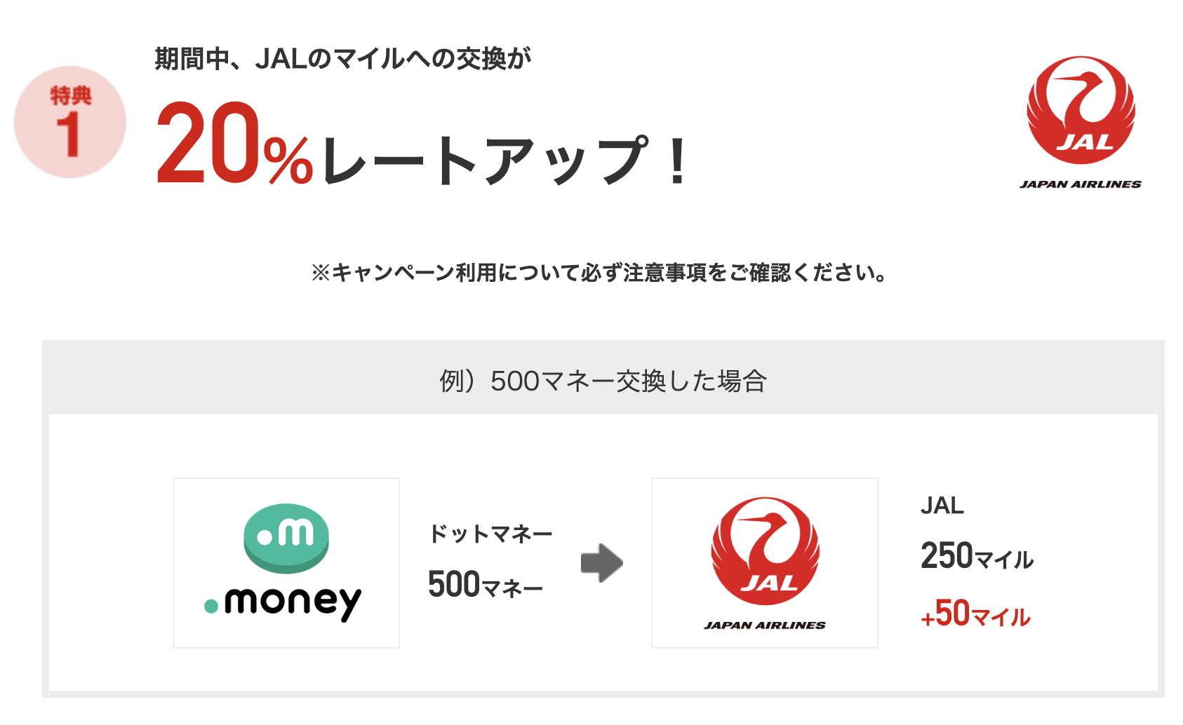 | 公式ページ | ドットマネー×JALマイル交換キャンペーン |