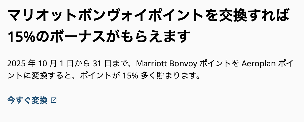 対象プログラム | Marriott Bonvoy(マリオットボンヴォイ)→ Air Canada Aeroplan(エアカナダ・エアロプラン) |