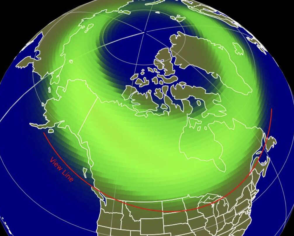どのサイトで確認したかを忘れてしまったのですが、こんな感じでオーロラマップや予想をしてるサイトやアプリがあるので、適当に調べてみました。