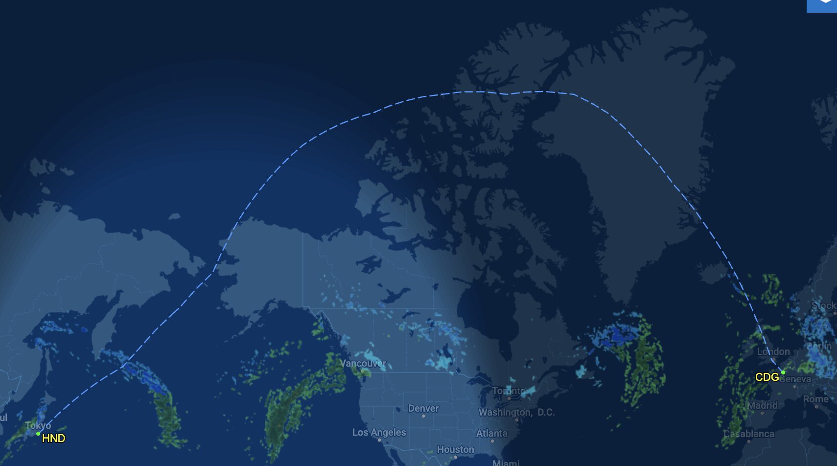 さらに昔は、同じくアラスカ方面へ向かったあと、左に旋回してロシアと北極圏の間を抜けるようなルートもあった記憶があります。