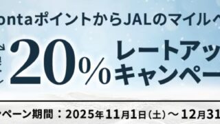 JALマイル交換レートアップキャンペーン概要1. キャンペーン内容期間中に対象ポイントをJALマイルに交換交換レートが最大20%アップボーナスマイルの付与は2026年1月末予定2. キャンペーン期間交換申請期間:2025年11月1日(土)~...