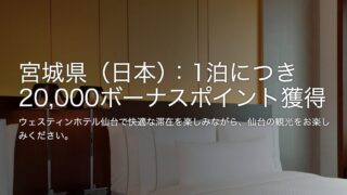 マリオットろぐ 【マリオット】ウェスティン仙台20,000ボーナスポイントオファーはお得? ウェスティン仙台の20,000ボーナスポイント付き宿泊プラン(2025年10月)を徹底比較。通常料金・朝食・ホテルクレジットと比較し、過去のポイントセール単価(約1.34円/pt)と照らして実質的な得失をわかりやすく解説します。 2025.10.02 マリオットろぐ
