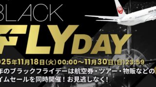 【JAL】ブラックフライデーセール 国内線7,700円〜・パッケージ最大53,000円引きなど【2025年】