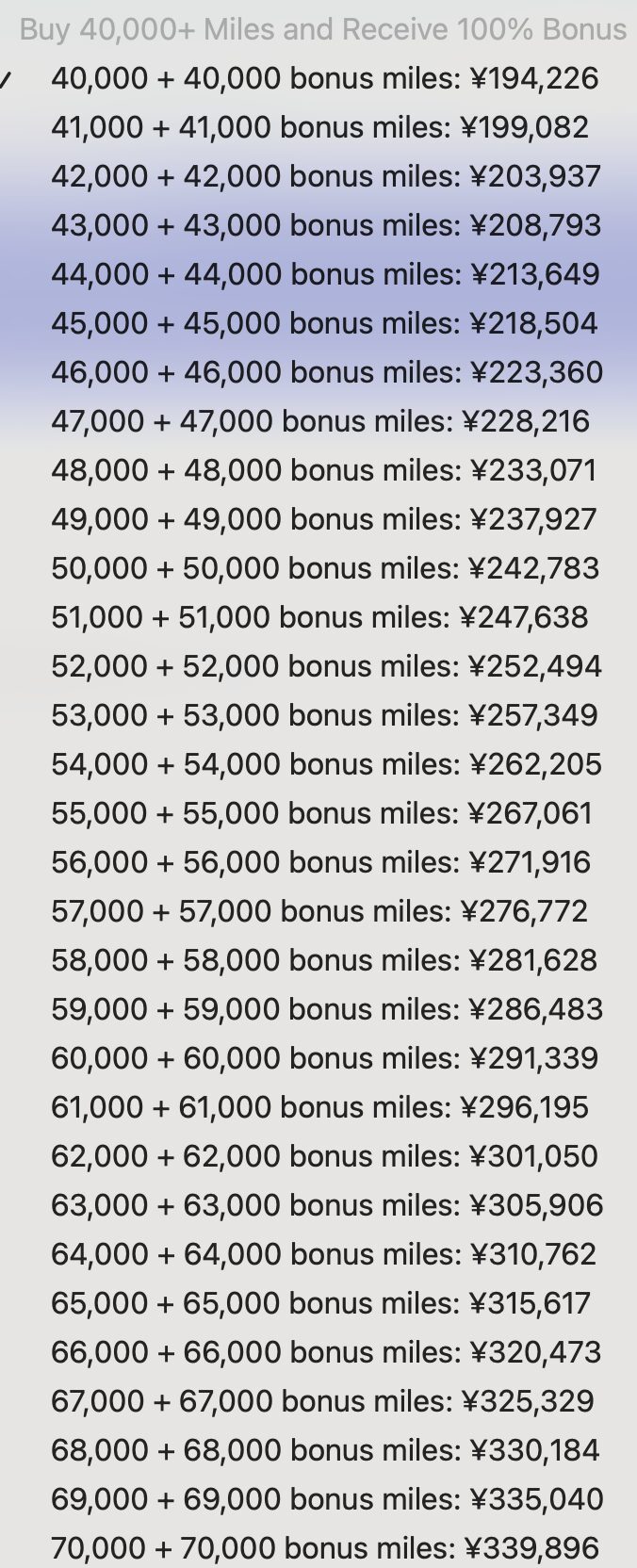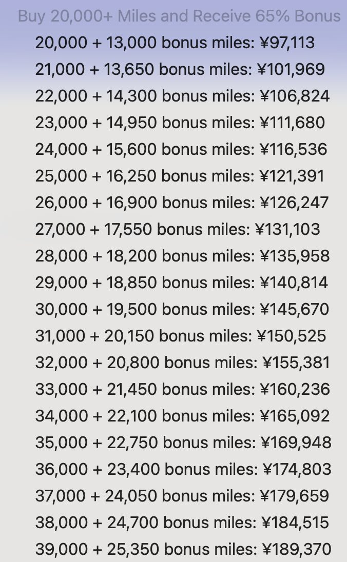 - 年間購入上限:200,000マイル(ボーナス分を除く)