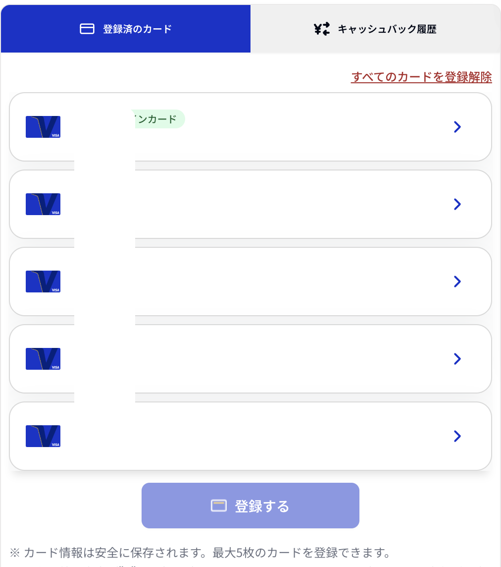 登録できるカードは5枚まで
